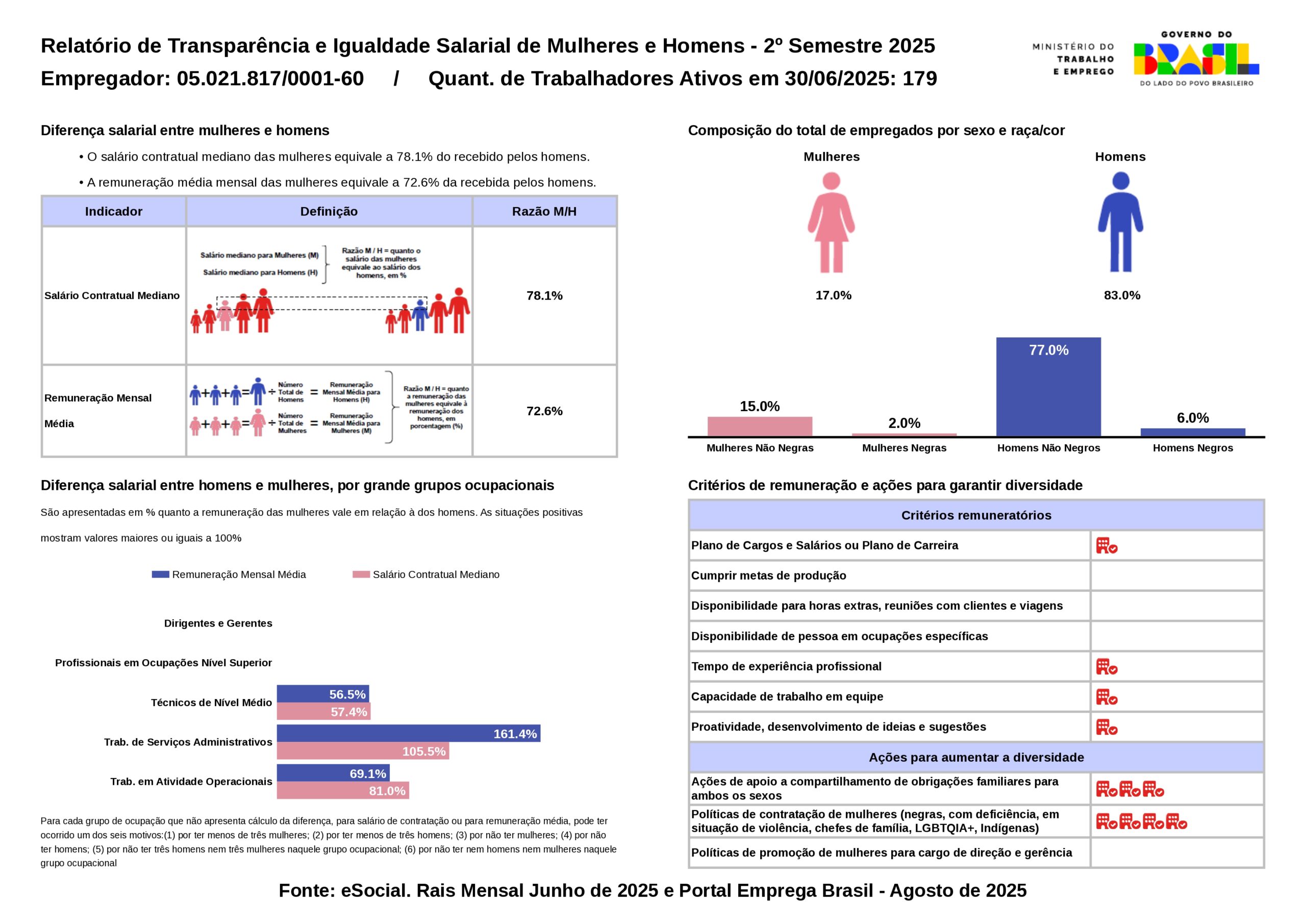 Nossa política de cargos e salários foi concebida mesmo antes da promulgação da referida legislação e é continuamente aprimorada, levando em consideração os desafios do mercado e as oportunidades de aprimoramento. Dessa forma, garantimos que a transparência e a integridade sejam pilares inabaláveis em todas as nossas práticas.